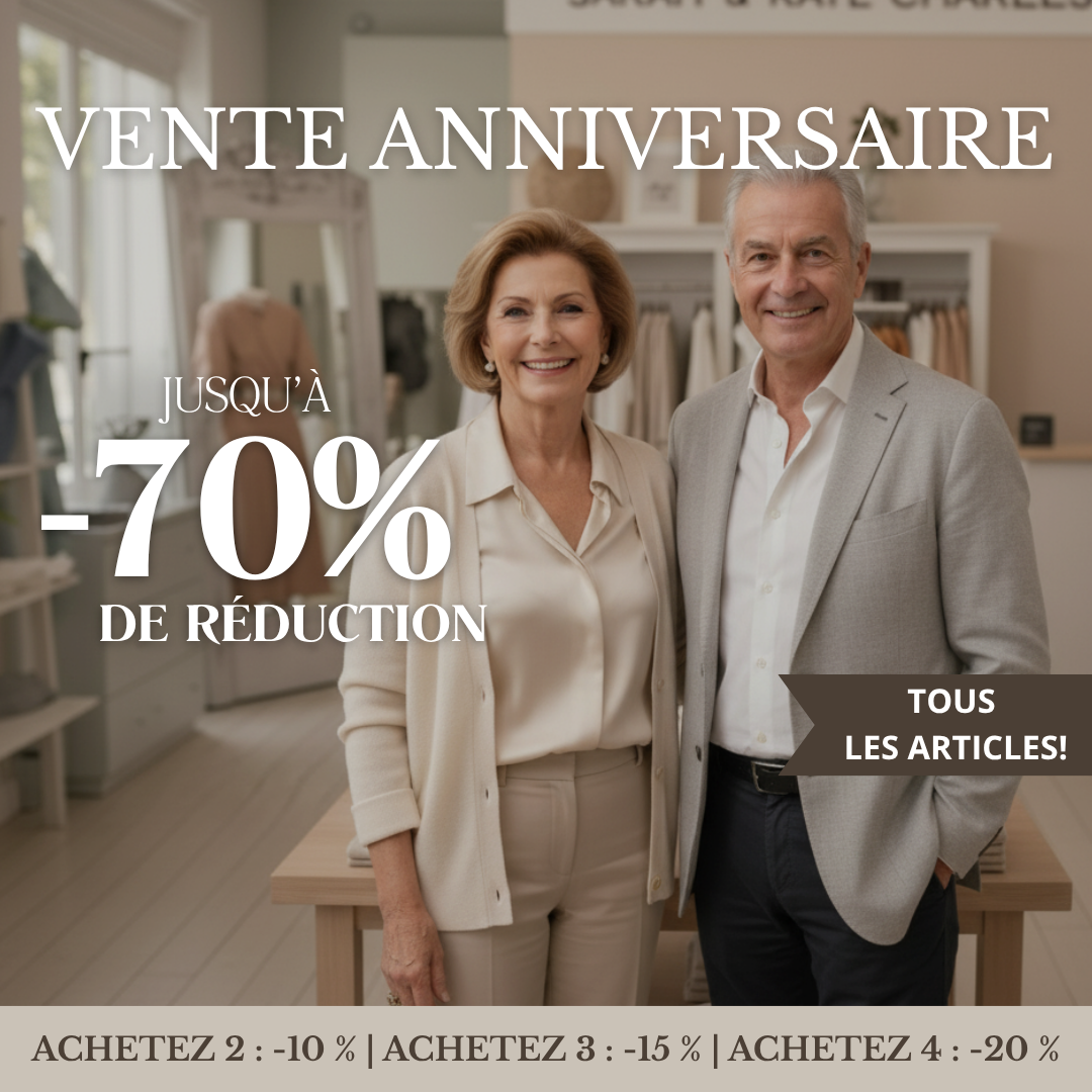 Pour vous remercier, nous célébrons cet anniversaire avec jusqu’à -70 % de remise pendant notre Vente Anniversaire — notre façon à nous de vous rendre un peu de ce que vous nous avez offert.
